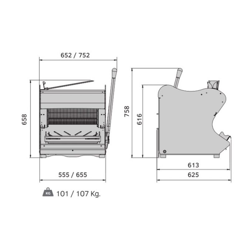 Main characteristics Bread slicer Rollmatic C42. Body color - White, Body material - Steel, Country of origin - Italy, Installation type - Desktop, Net weight, kg - 101, Power supply - Electricity, Power, kW - 0.75, Size - 651x603x752, Supply voltage, V - 380, Warranty period, months - 12, other specifications by phone: +38(067) 5710158.