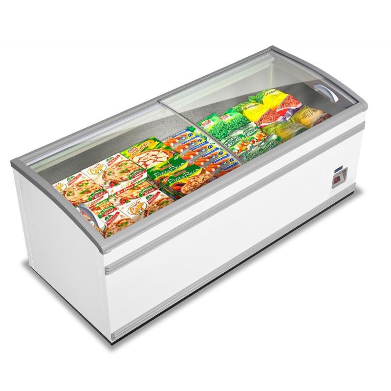 The SOUND BT TN curved glass chest freezers feature large capacity, low energy consumption and sliding lids. Due to their large chamber volume, they are ideal for storing and displaying packaged fish, ice cream, cakes, dairy products, packaged fruit and vegetables, meat, poultry, as well as various semi-finished and frozen products.
