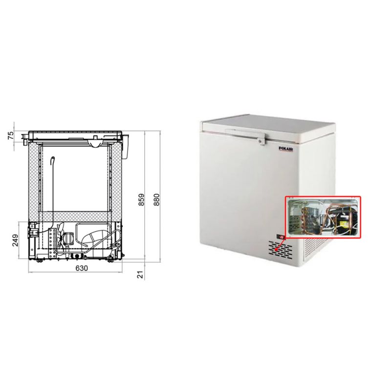 Main characteristics Chest Freezer Polair SF120LF-S. Country of origin - Ukraine, Net weight, kg - 50, Size - 790x722x880, Supply voltage, V - 220, Temperature conditions, C - -25...-18, Volume, l - 197, other specifications by phone: +38(067) 5710158.