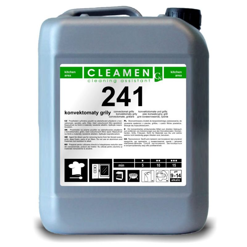 Main characteristics Cleaning agent for combi steamers and grills CLEAMEN 241. Country of origin - Czech Republic, Net weight, kg - 5.5, Packaging, kg - 5.5, Phosphate free - Yes, Pollution - Grease, burnt-on food, soot (for particularly difficult stains), Purpose - For grills/barbecues, For kitchens, For containers and containers, Shelf life, months - 24, Type of product - Fat remover, Volume, l - 5, other specifications by phone: +38(067) 5710158.