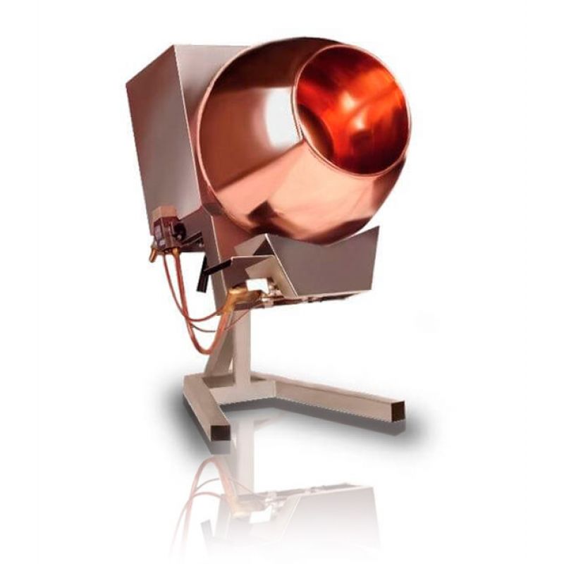 The ICBASSINA 8 coating machine is the ideal machine for coating hazelnuts, walnuts, almonds, dried fruits with chocolate. It has a robust structure and allows you to quickly obtain perfect pralines. Models with a blower to speed up the coating process or a copper drum are available on request. The ICBASSINA can be combined with Spraychoc for direct spraying of chocolate into the tank.