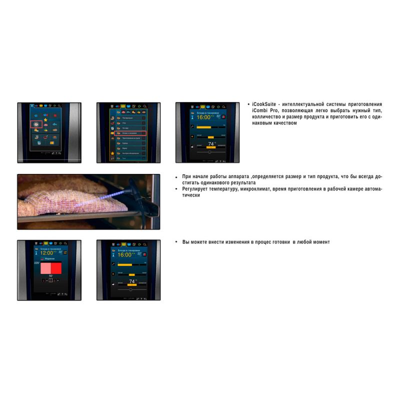 Main characteristics Combi steamer RATIONAL iCombi Pro 10-2/1 E. Automatic washing system - Yes, Body color - Grey, Body material - Stainless steel, Connecting to the Internet - Eat, Connection to the sewerage system - Eat, Connection to the water supply - Eat, Control Panel - Sensory, Country of origin - Germany, Display - Yes, Equipment type - Combi oven, LED camera light - Yes, Levels - 10, Net weight, kg - 179, Number of doors - 1, Number of trays - 10, Power supply - Electricity, Power, kW - 37.4, Series - iCombi Pro, Size - 1072x1064x1042, Supply voltage, V - 380, Temperature conditions, C - +30...+300, Temperature probe - Yes, Tray dimensions - 10xGN2/1, USB port - Eat, Vaporization type - Boiler, Warranty period, months - 12, other specifications by phone: +38(067) 5710158.
