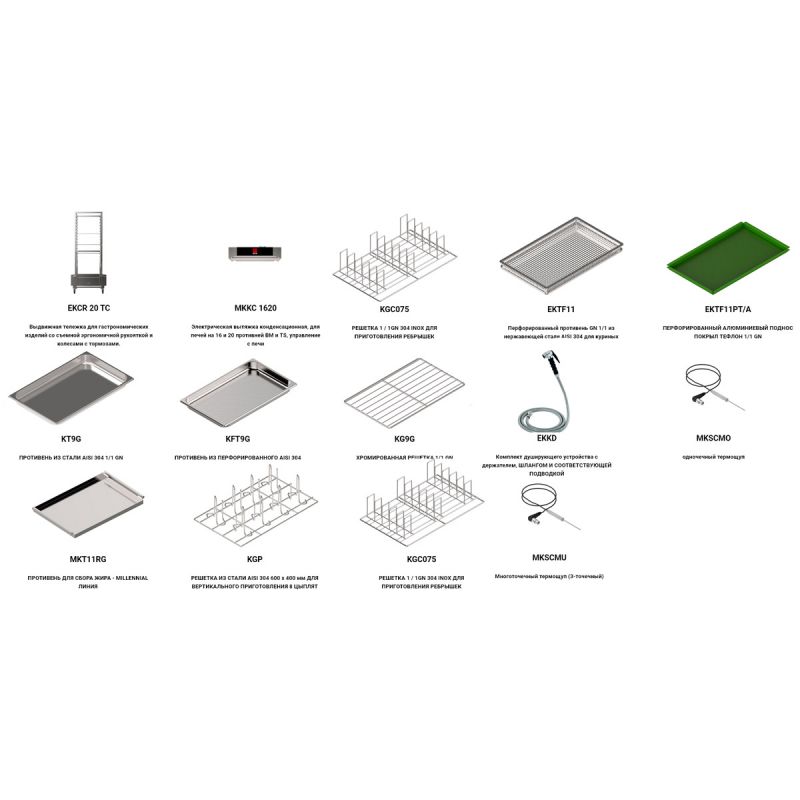 Main characteristics Combi steamer Tecnoeka MKF 2011 TS. Automatic washing system - Yes, Body color - Grey, Body material - Stainless steel, Connecting to the Internet - Eat, Connection to the sewerage system - Eat, Connection to the water supply - Eat, Control Panel - Sensory, Country of origin - Italy, Distance between levels, mm - 66, Equipment type - Combi oven, Installation type - Floor, Net weight, kg - 247.2, Number of fans, pcs. - 4, Number of programs - 500, Number of trays - 20, Power supply - Electricity, Power, kW - 31, Size - 930x1035x1900, Supply voltage, V - 380, Temperature conditions, C - +30...+270, Temperature probe - Yes, Tray dimensions - GN1/1, USB port - Eat, Vaporization type - Injector, Warranty period, months - 12, Work surface material - Stainless steel, other specifications by phone: +38(067) 5710158.