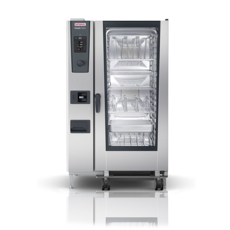 With 20 2/1 GN loading levels, the RATIONAL combi steamer iCombi The Classic 20-2/1 E is designed for commercial kitchens. The model boasts simple and intuitive controls, as well as a wide range of functions that turn cooking into a real art. And all this without spending a lot of time, with maximum productivity and reliability. RATIONAL iCombi Classic 20-2/1 E allows you to work economically, optimizing the supply of steam when cooking.