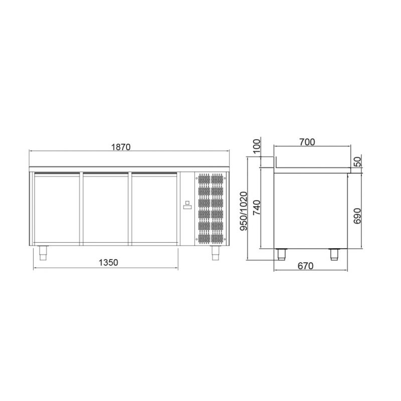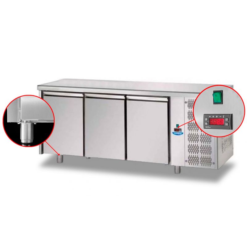 Hlavní charakteristiky Chladicí stůl Tecnodom TF 03 MID GN 3dveřový. Barva těla - Šedá, Čistá hmotnost, kg - 102, Dostupnost strany - Žádný, Dostupnost umyvadla - Žádný, Materiál pracovní plochy - Nerez, Materiál těla - Nerez, Napájecí napětí, V - 220, Napájení - Elektřina, Objem, l - 460, Ovládací panel - Elektronický, Počet dveří - 3, Počet polic - 3, Teplotní podmínky, C - -2...+8, Typ chlazení - Dynamický, Typ dveří - Houpačka naslepo, Typ instalace - Patro, Typ zařízení - Chlazený stůl, Velikost - 1870x700x900, Výkon, kW - 0,5, Záruční doba, měsíce - 12, Země původu - Itálie, další specifikace po telefonu: +38(067) 5710158.