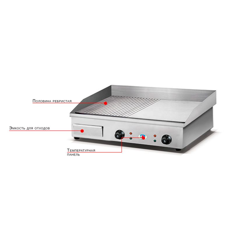 Kombinovaná plocha na smažení, materiál - nerez, teplotní rozsah 50-300 C. Hmotnost 32 kgSpecifikace