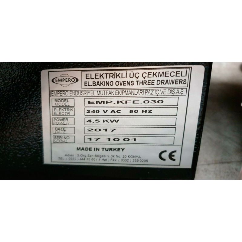 Hlavní charakteristiky Elektrická pec na brambory Empero EMP.KFE.030. Čistá hmotnost, kg - 60, Napájecí napětí, V - 380, Napájení - Elektřina, Ovládací panel - Mechanické, Typ zařízení - Bramborová pec, úrovně - 3, Velikost - 500x700x980, Výkon, kW - 4.5, Záruční doba, měsíce - 12, Země původu - Turecko, Zobrazit - Žádný, další specifikace po telefonu: +38(067) 5710158.