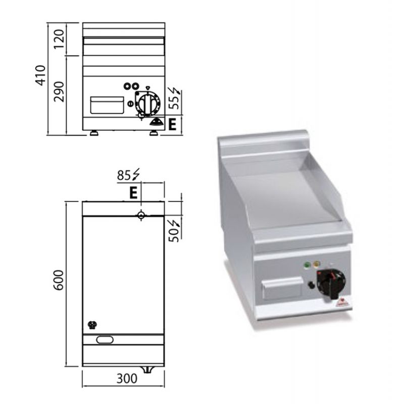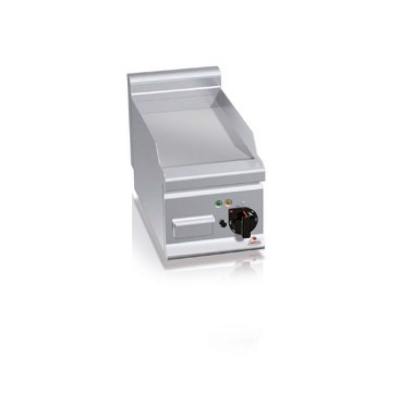 Elektrická stolní fritovací plocha Bertos E6FR3B má i přes své malé rozměry vysokou produktivitu. Tento model se vejde do té nejskromnější kuchyně, přičemž vašemu podniku poskytne až 90 porcí za hodinu. Pracovní plocha je zde texturovaná, ideální pro přípravu rybích a masových steaků, stejně jako chleba, a dodává pokrmům chutnou žebrovanou kůrku. Výkon modelu Bertos E6FR3B je 2,7 kW, což poskytuje minimální rychlost smažení 8 minut. Topné těleso je vyrobeno z oceli, zajišťuje rychlý ohřev celého povrchu. Teplota topení je regulována termostatem, nechybí ani bezpečnostní termostat. Aby se zabránilo rozstřikování tuku, jsou na třech stranách povrchu ochranné strany. Plocha na vaření je mírně nakloněná, což umožňuje odtok zbytkového oleje a tuku vypouštěcím otvorem do utěsněného sběrače tuku.
