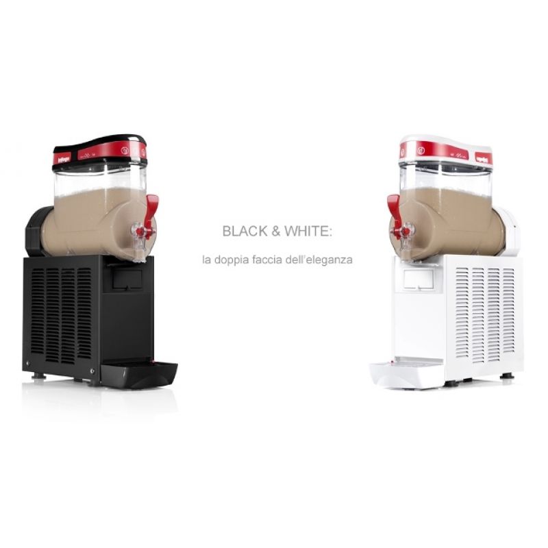 Ugolini Mini 2 granitor je řešením pro ty, kteří hledají kompaktní a spolehlivé zařízení na výrobu krémů, sorbetů a „ovocného sněhu“. Nejmenší dávkovač na světě s patentovaným magnetickým systémem pohonu nabízí nekompromisní kvalitu a odolnost. Jeho nerozbitné polykarbonátové 2 nádoby o objemu 6 litrů zaručují bezpečnost a šetrnost k životnímu prostředí a díky verzi ETC (Electronic Temperature Control) můžete snadno kontrolovat teplotu produktu a zajistit tak jeho stabilní kvalitu. Ugolini Mini 2 je k dispozici ve stylových černobílých verzích, které skvěle zapadnou do každého interiéru. Vysoká produktivita, hmotnost jedné porce 75 g a použití moderního chladiva R290A činí z tohoto výrobníku granita nedílnou součást vašeho úspěšného podnikání.Specifikace