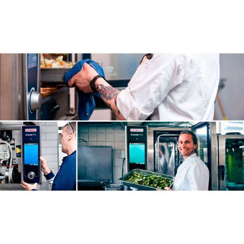 Parní konvekční trouba RATIONAL iCombi Pro 10-1/1 E je určena pro použití v komerční kuchyni. Výrobce poskytl mnoho režimů a flexibilních nastavení pro výrobní proces, což vám umožní vařit pokrmy rychle a zároveň chutně. Konvektomat RATIONAL iCombi Pro 10-1/1 E umožňuje kuchaři pracovat s produkty, jako jsou ryby a maso. Inteligentní systémy konvektomatu usnadňují vlastní čištění nečistot a vodního kamene.