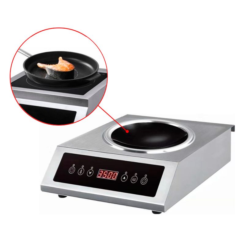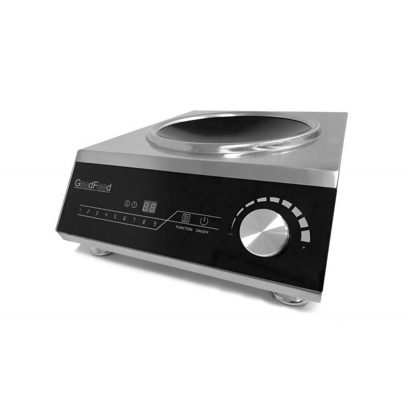 WOK na jeden hořák. Tělo z nerezové oceli. Povrch: keramické sklo. Maximální zatížení skla 40 kg. Časovač. Digitální displej. Teplotní rozsah 60 – 240 °C. Elektronická ochrana proti přehřátí. Hmotnost 6 kgSpecifikace