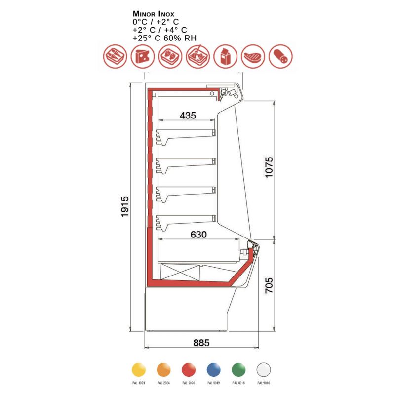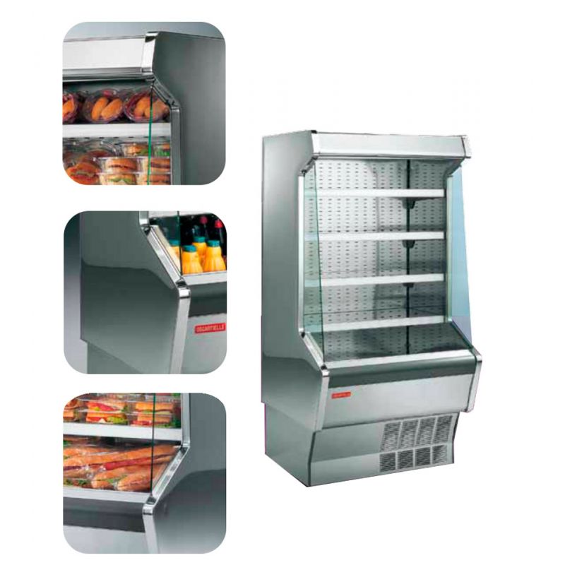 Skluzavka OSCARTIELLE Minor Inox. Připojená chlazená vitrína určená pro skladování a prodej čerstvých, balených potravin. Vitrínu lze instalovat do jedné řady s ostatními vitrínami, navíc je vybavena panoramatickými bočními stěnami. Dodává se s vestavěným nebo vzdáleným kompresorem. Další možnosti: osvětlení police, noční roleta, držáky cenovek z hliníku a plastu, díly a bočnice z drátu nebo skla.