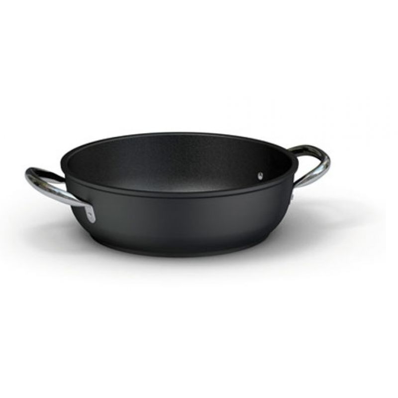 Pánev se dvěma držadly Ballarini 5508.24 , výška 7,5 cm, průměr 24 cm Vysoce pevná zesílená hliníková slitina s profesionálním nepřilnavým povrchem Kera Stone vysoké tloušťky kovu pro rovnoměrné rozložení tepla a jeho udržení. Rukojeť z nerezové oceli, trubková pro snížení tepelné vodivosti. Patentovaný indikátor teploty Safepoint na rukojeti.Specifikace