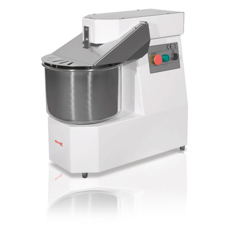 Spirálová míchačka těsta Alimacchine SM50FT2VTX . Lakované kovové tělo, nevyjímatelná mísa, nezvedací pracovní mechanismus, mísa 64 l, kapacita těsta 45 kg, 2 rychlosti. Hmotnost 148 kg. Celkové rozměry 520x890x870 mm. Výkon, kW 1,8. Připojení 380V.Specifikace