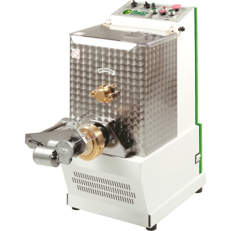 Stroj na čerstvé těstoviny Fimar MPF/8 je stroj schopný rychle zásobit velkou restauraci nebo jídelnu těstovinami, nabízí širokou škálu těstovin, špaget a makaronů, stejně jako výrobu listového těsta. Tento stroj na těstoviny je vyroben z odolné a odolné nerezové oceli. Karoserie je pokryta lakem odolným proti mechanickému poškození. Mísa pojme 8 kg těsta a poskytuje kapacitu 25 kg produktu za hodinu. Na jejím krytu je bezpečnostní mikrospínač. Hnětací hák je ocelový, šnek je vyroben ze slitiny bronz/mosaz. Stroj na těstoviny Fimar MPF/8 je navíc vybaven elektronickým zařízením pro krájení těstovin, chladicím systémem pro vytlačovací zónu a stojanem, což nejen zlepšuje jeho technické vlastnosti, ale také zvyšuje snadnost použití tohoto modelu. Stroj na těstoviny je navíc vybaven mosaznými/bronzovými raznicemi různých tvarů. Zvlákňovací prům. 78 mm