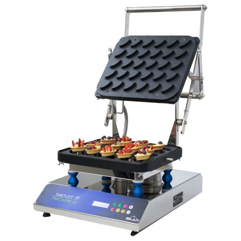 Stroj na tartaletky Bilait je určen pro rychlou a efektivní přípravu základů na tartaletky a křehkého pečiva. S jeho pomocí vytvoříte sladké i slané dobroty různých tvarů a velikostí, vyberete si vhodné talíře z katalogu nebo si objednáte design na míru přímo od výrobce. Pohodlná výměna talířů díky motýlkovým šroubům a individuální regulaci teploty usnadňuje přizpůsobení stroje jakémukoli kulinářskému úkolu. Hliníkové desky s nepřilnavým teflonovým povrchem zajišťují perfektní kvalitu pečení bez lepení těsta. Jednoduše vložte produkt mezi dva talíře, nastavte čas a teplotu a za pár minut si vychutnejte své hotové tartaletky. Jednoduchost a praktičnost Tartlet Machine, stejně jako všechny produkty Bilait, umožňuje jedné osobě vyrobit až 750 tartaletek za hodinu.Specifikace