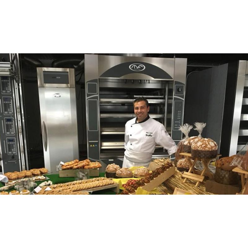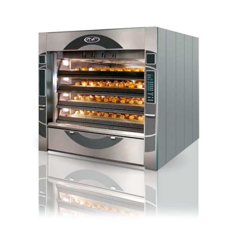 Terasová pec Mondial Forni řady 43M MONDIAL s parotrubkovým ohřevem funguje na plyn nebo naftu a skládá se ze čtyř nezávislých desek. Standardní výška topeniště je 220 mm nebo 170 mm v závislosti na modelu. Řada MONDIAL se doporučuje pro pečení středních a velkých chlebů, stejně jako pro všechny produkty, které vyžadují silné teplo zespodu a hodně páry. K nakládání produktů můžete použít: pekáče, mechanické nebo ruční zakladače, automatické lopaty pro nakládání a vykládání produktu.