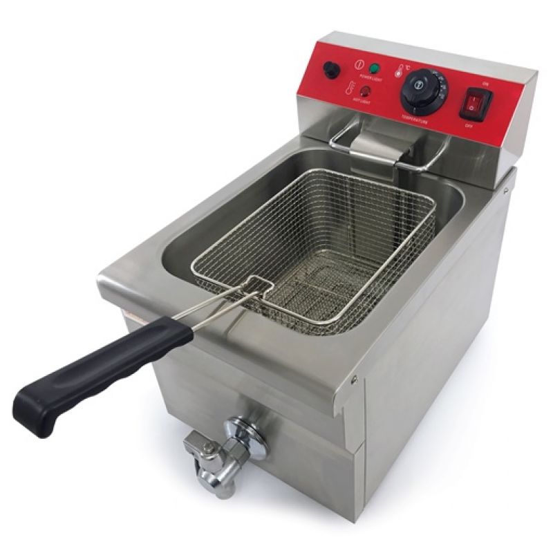 Main characteristics Deep fryer GoodFood EF12A1 with tap. Body color - Grey, Body material - Stainless steel, Control Panel - Mechanical, Country of origin - China, Display - No, Equipment type - Deep fryer, Gross weight, kg - 12, Handle material - Plastic, Installation type - Desktop, Net weight, kg - 10, Number of posts - 1, Power supply - Electricity, Power, kW - 3.25, Size - 290x550x410, Supply voltage, V - 220, Temperature conditions, C - +60...+200, Volume, l - 12, Warranty period, months - 12, Work surface material - Stainless steel, other specifications by phone: +38(067) 5710158.