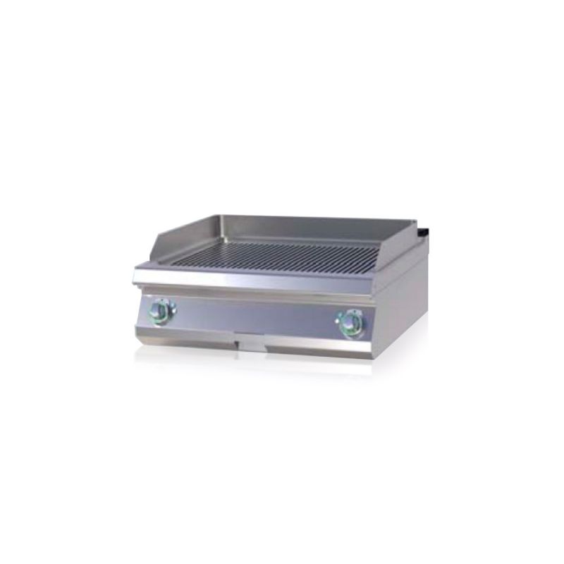 Electric frying surface RM GASTRO FTR 708 E Ribbed, tabletop, surface material - stainless steel. Corrugated surface . For installation on a bridge or on a table . Excellent thermal conductivity of the surface . Size 800 x 730 x 300 mm. Weight 72.2 kg. Power 9 kW. Working surface 560x770 mm. Temperature +50…+300 C. Connection 380 V.
