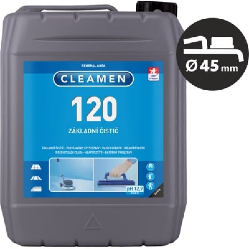 Floor cleaner CLEAMEN 120 5l The strongest product designed to remove dirt and repair all types of old dispersions and wax from PVC and linoleum. Can be used as a main cleaning agent, mainly before applying wax. The product is effective in removing trampled dirt from all alkali-resistant floor coverings (tiles, PVC, old linoleum, terrace, sand-lime brick, unpolished granite). Dosage from 10ml / 1 liter Use it with 5-30ml dosing cap or 2ml dosing pump.Specification