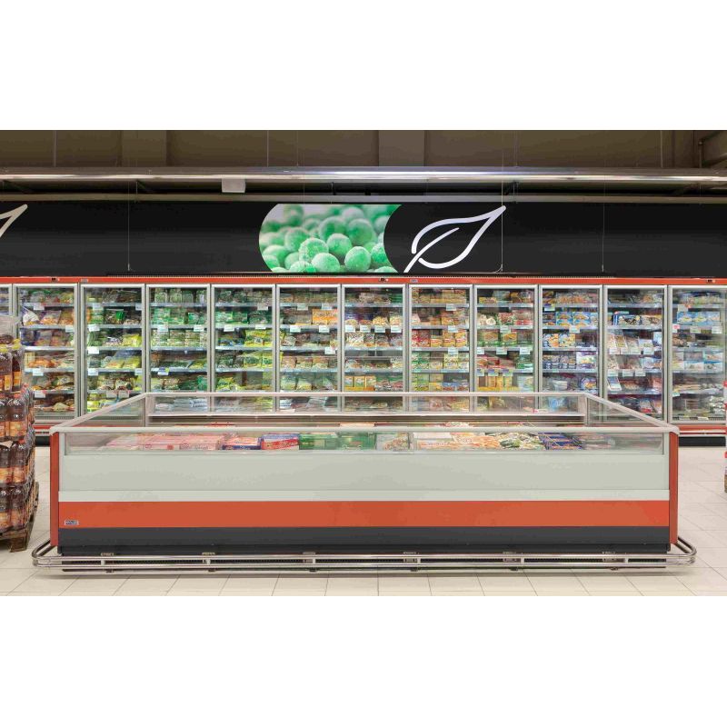 It has dynamic cooling and is the best option for use in supermarkets/minimarkets. Bonnet is designed for storing and displaying packaged fish, ice cream, cakes, dairy products, packaged fruits and vegetables, meat, poultry, as well as various semi-finished products and frozen products.