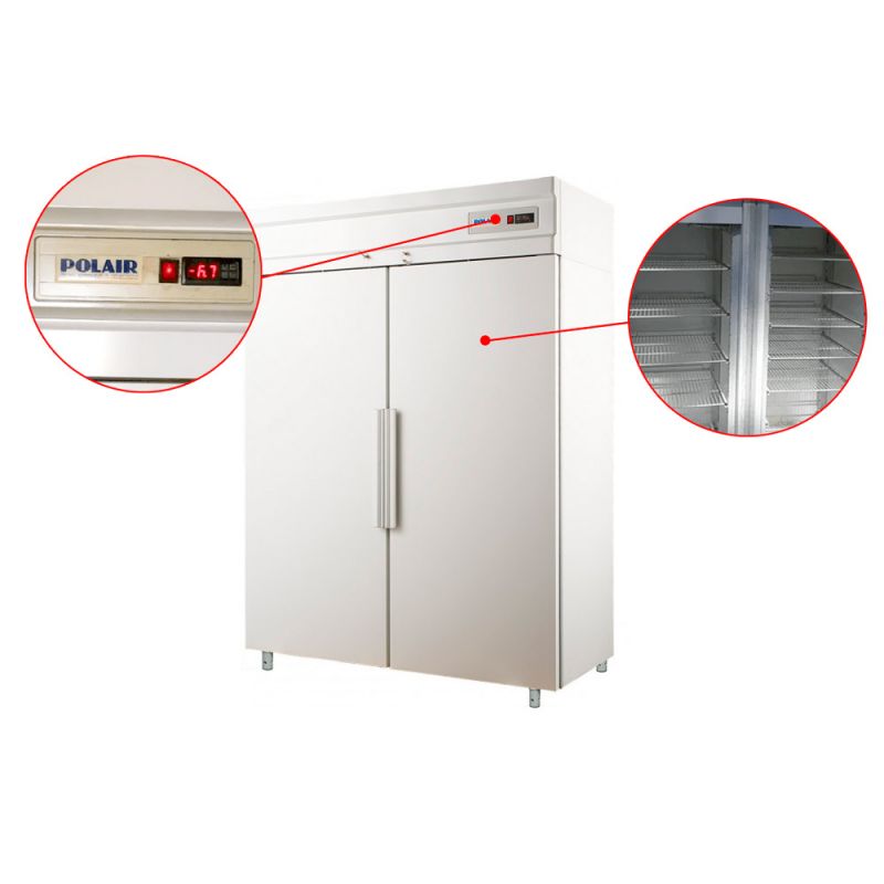The refrigerated cabinet with 2 doors Polair CM110-S is designed for storing food products in catering establishments, retail spaces, warehouses, utility rooms, food production facilities, and culinary workshops.