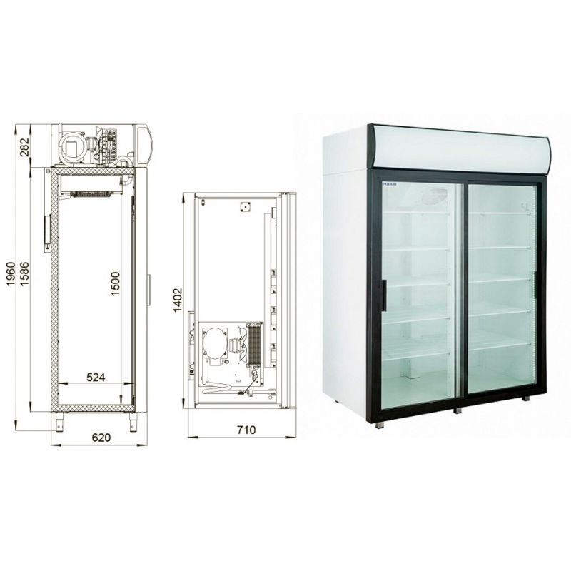 Main characteristics Refrigerated cabinet Polair DM110Sd-S 2 glass doors. Body color - White, Body material - Stainless steel, Cooling type - Dynamic, Country of origin - Ukraine, Door type - Glass swing, Equipment type - Refrigerated cabinet, Installation type - Floor, LED camera light - Yes, Net weight, kg - 176, Number of doors - 2, Number of shelves - 8, Power supply - Electricity, Power, kW - 0.55, Size - 1402x710x1960, Supply voltage, V - 220, Temperature conditions, C - +1…+10, Volume, l - 1000, Warranty period, months - 12, other specifications by phone: +38(067) 5710158.