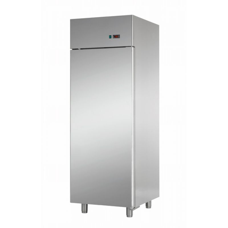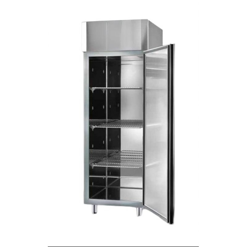 The Tecnodom AF07PKMTN refrigerated cabinet is equipped with three GN2/1 shelves with plastic coating and hooks. There is an automatic defrosting function. The refrigerant used is R290A. There is a door microswitch. The dimensions in the packaging of this equipment are: length 760 mm, width 850 mm, height 2180 mm. The body is made of stainless steel.