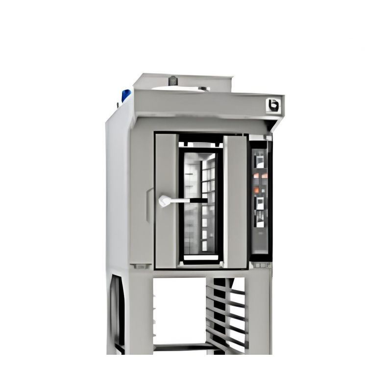 The Bassanina FR MINI E 46.10 rotary oven is a compact oven with a fairly high productivity. Recommended for bakeries and pastry shops. This oven is equipped with 10 levels for 60 x 40 cm baking trays and a proofing cabinet with independent control for 12 levels with a distance of 90 mm between them. The body of the rotary oven and proofing chamber is completely made of stainless steel inside and outside. The door is equipped with double glass for easy observation of the baking process. The built-in steam generator has high power, is easy to remove and clean. Mineral wool is used to insulate the cross panels. The heating elements are reinforced. Hot air circulates evenly inside the baking chamber, providing ideal conditions for baking. The oven is capable of baking various types of bakery products. Due to its versatility and compact size, it is ideal for use in shopping centers, hotels and restaurants, and can also meet many different needs.Specification