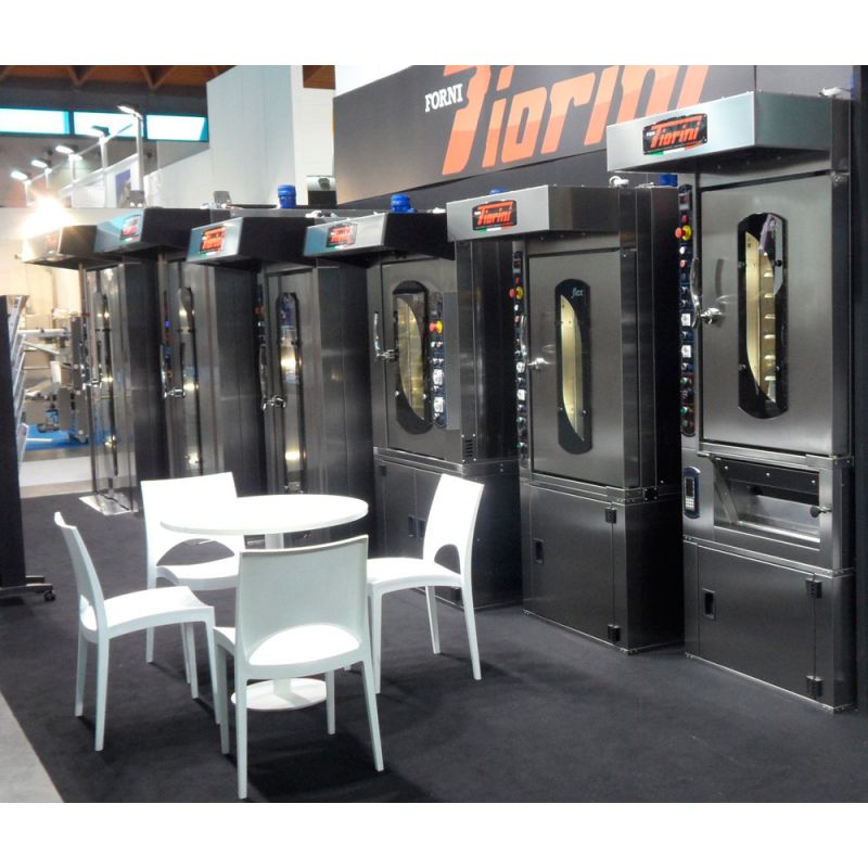 Rotary oven Forni Fiorini FLEX Compact, functional oven manufactured by Forni Fiorini is ideal for small bakeries, pastry shops, catering facilities or supermarkets. The oven is supplied with a proofing chamber, which allows you to significantly save production space. As a result, you get a set of equipment on which you can bake a wide variety of bakery and confectionery products. Also, the rotary oven can be located on a work table or a stand made of stainless steel. Baking is carried out on a trolley with a baking tray size of 400 mm by 600 mm, of which there can be from 6 to 12 pcs. Depending on the number of baking trays, the distance between the levels varies from 73 to 146 mm. This must be taken into account when forming the assortment and weight of products. The trolley is not included in the delivery set and is ordered separately. At the request of the customer, the oven can be equipped with an electric hearth module for 2 baking trays 400x600 mm or a programmable control panel. The oven is available in electric, gas or diesel fuel. Baking trays: 6-12 (400x600 mm). Distance between baking trays - from 73 mm to 146 mm