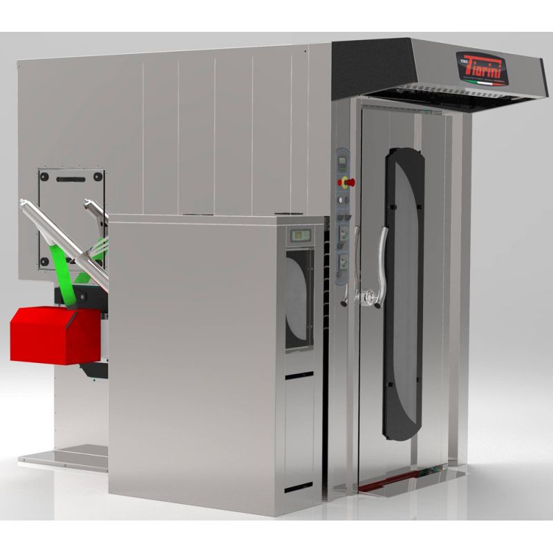 Rotary oven Forni Fiorini ROTOR FR The rotary oven is used in professional kitchens of bakeries, sales areas and confectioneries for baking a wide variety of dough products. The oven meets all the requirements for the quality of the manufactured products and is distinguished by its functionality, reliability and durability. High quality baking is ensured by the presence of a powerful steam generator and a heat exchanger made of refractory stainless steel. The steam generator provides the required amount of steam even during a long baking process. Standard trolley mounting system - hook. Distance between baking trays - from 83.5 to 167.5 mm.