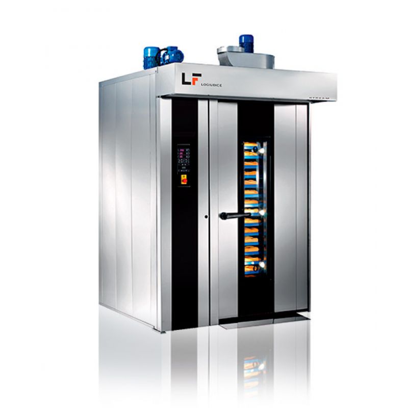 Rotary oven Logiudice Forni STREAM LFRNKE 6080 Stream series ovens are ideal for baking all types of confectionery and bakery products. These ovens can be used both in small production areas and in large enterprises. Direct access to the heat exchanger provides convenient maintenance and repair. The standard trolley mount is a hook, but if desired, the following options are available: a platform and automatic trolley lift, which is especially important when making delicate types of confectionery, as well as a programmable digital control panel.E/Power - 54.5/380