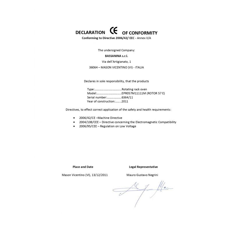 Main characteristics Rotary oven Rotor 68 Bassanina. Body color - Grey, Body material - Stainless steel, Control Panel - Electromechanical, Country of origin - Italy, Distance between levels, mm - 87, Equipment type - Rotary oven, Installation type - Floor, Levels - 18, Net weight, kg - 1450, Number of doors - 1, Number of trays - 18, Platform - Option, Power supply - Electricity, Power, kW - 54, Size - 1440x1930x2220+402, Supply voltage, V - 380, Temperature conditions, C - +300, Thermostat - 2, Tray dimensions - 600x800, Warranty period, months - 12, other specifications by phone: +38(067) 5710158.