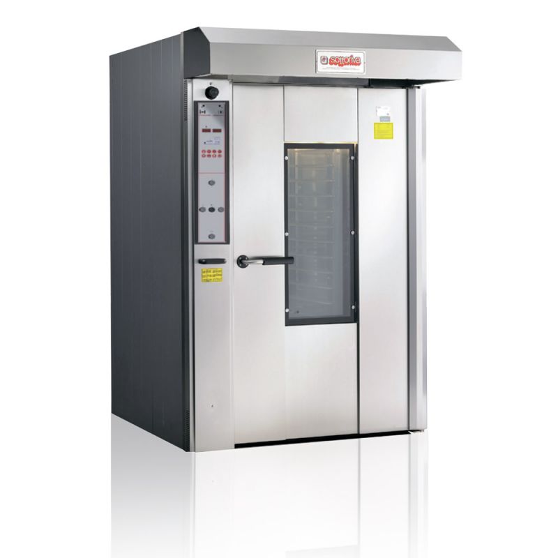 The rotary oven SOTTORIVA QUASAR 4060 E TOP is equipped with high-power heating elements. The oven is equipped with an exhaust hood with a protective grill. Digital or electromechanical control panel depending on the customer's wishes. There is a sound signal for the end of the baking process. Powerful steam generator. Electric or gas version of the oven or a burner for diesel fuel are available. Suitable for baking a variety of products in small and large production, bakeries, confectioneries.