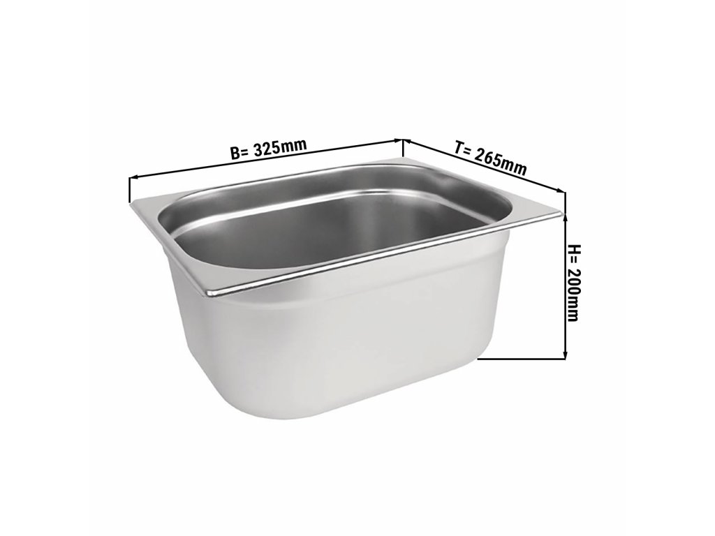 Pohodlný tvar a velikost podnosu (GN1/2) umožňuje umístit gastronádobu 1/2 h 200mm 12200 do trouby, trouby, konvektomatu, chladničky nebo mrazničky. Sada obsahuje víko, obě položky jsou vyrobeny z nerezové oceli a díky tomu se vyznačují zvýšenou odolností proti opotřebení.