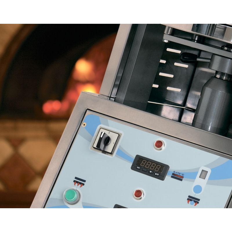 Kuter na výrobu pizzy u nás existuje už dlouho, ale tvarovač pizzy Mecnosud PF33 je relativně nový. Tento stroj kompenzuje nedostatek zkušených kuchařů, kteří jsou schopni vlastníma rukama vytvořit dokonalý základ na pizzu. Výroba pravé italské pizzy je kouzelný, kreativní a mimořádně složitý proces. Zkušený pizzaiolo dělá vše ručně, ale s tvarovačem pizzy Mecnosud PF33 můžete vaření výrazně zjednodušit a zkrátit. Tvarovač pizzy je zařízení, které vaší firmě poskytne ideální základy pro pizzu. Taková pizza se neroztrhne, těsto bude rovnoměrně nasycené vlhkostí, aniž by se příliš namočilo. Formovací válce v tomto modelu jsou vyrobeny z vysoce kvalitní nerezové oceli AISI304. Nechybí elektronický časovač a nezávislé ovládání ohřevu všech povrchů.