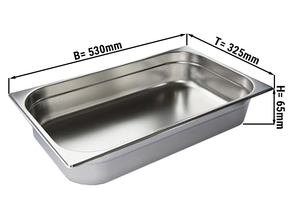 The kit includes a lid of the appropriate size, which will ensure the preservation of heat inside the container and significantly reduce the cooling time of the dish. Gastronorm container 1/1 h 65mm 11065 can serve as a replacement for a baking sheet or a baking dish, if necessary, such a container is used for baking, frying and stewing in ovens, combi steamers, convection ovens, etc. The size of the baking tray is standard - CN 1/1, the size of the container is 530 * 325 * 65 mm.