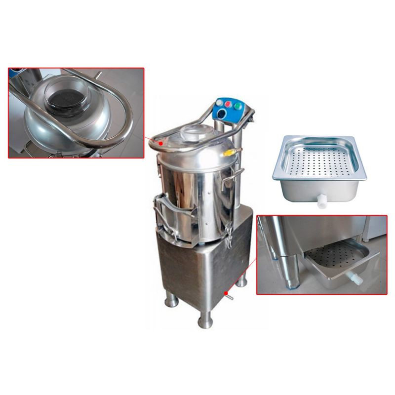 Elektrická škrabka na zemiaky Altezoro NRV-15 A1 - veľká a výkonná, určená pre veľké objemy čistenia, umožňuje čistenie až 300 kg za hodinu. Vyrobené z potravinárskej nehrdzavejúcej ocele, je tu zabudovaný časovač pre autonómnu prevádzku. Jednoduché použitie. Určené pre stále veľké objemy spracovaných zemiakov, prípadne iných okopanín. Tento model bude dobrou voľbou pre stravovacie zariadenia a veľké reštaurácie. Rýchlo a efektívne vykonáva únavnú a nezaujímavú prácu, čo umožňuje kuchárom zapojiť sa do kulinárskych majstrovských diel.