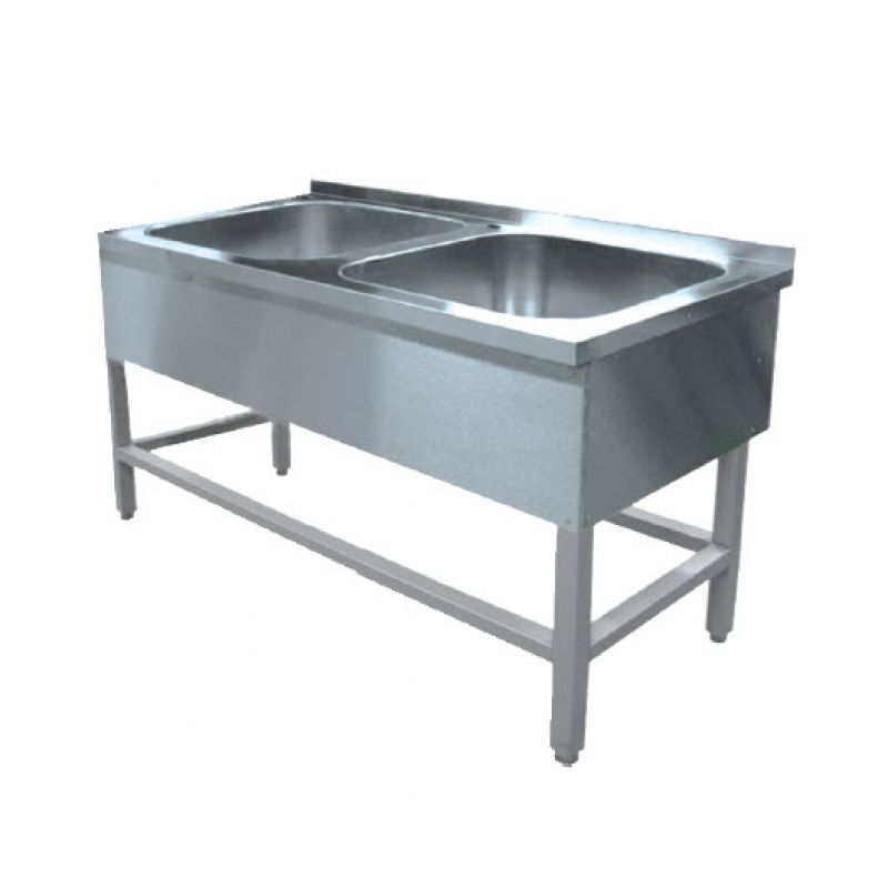 Dvojdielne umývadlo so stranou 1000x700x850 mm. Zvárané, celé vyrobené z nehrdzavejúcej ocele. Stolová doska s bočnicou. Na urýchlenie procesu umývania riadu v potravinárskom podniku, či už ide o jednoduchú jedáleň alebo elitnú reštauráciu, pomôže dvojdielny drez, ktorý sa vyznačuje pohodlným dizajnom. Rám: rúrka 30x30.Špecifikácia