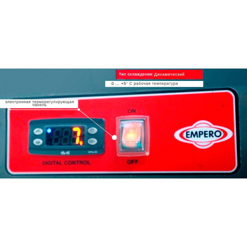 Chladiaci stôl Empero EMP.255.70.01 so štyrmi komorami uspokojí potrebu chladenia produktov tých najväčších stravovacích zariadení. Komory majú celkovú kapacitu 700 litrov. Krídlové dvere, s polyuretánovou izoláciou, samozatváracie. Teplota sa udržiava od 0 °C do +5 °C. Vyrobené z nehrdzavejúcej ocele, police vo vnútri komôr majú vrstvu plastu. Elektronický ovládací panel, systém automatického odmrazovania a odvádzania kondenzátu.