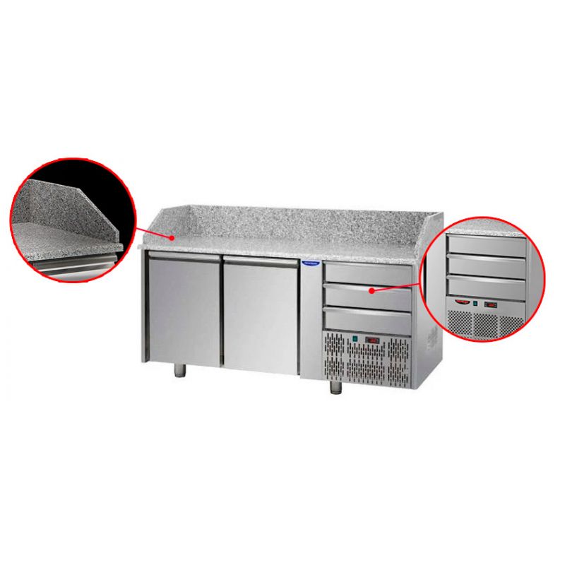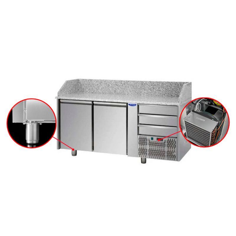Hlavné charakteristiky Chladiaci stôl na pizzu Tecnodom PZ 02 EKO C3 2 dvere. Displej - Jedzte, Dostupnosť strany - Jedzte, Farba tela - Šedá, Krajina pôvodu - Taliansko, Materiál pracovnej plochy - Žula, Materiál rukoväte - Nehrdzavejúca oceľ, Materiál tela - Nehrdzavejúca oceľ, Napájacie napätie, V - 220, Napájanie - Elektrina, Ovládací panel - Elektronické, Počet dverí - 2, Počet políc - 2+3, Teplotné podmienky, C - -2...+8, Typ dverí - Hojdačka naslepo, Typ inštalácie - Poschodie, Veľkosť - 1610x750x1100, Výkon, kW - 0,495, Záručná doba, mesiace - 12, ostatné špecifikácie telefonicky: +38(067) 5710158.