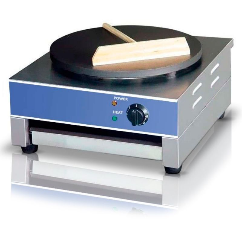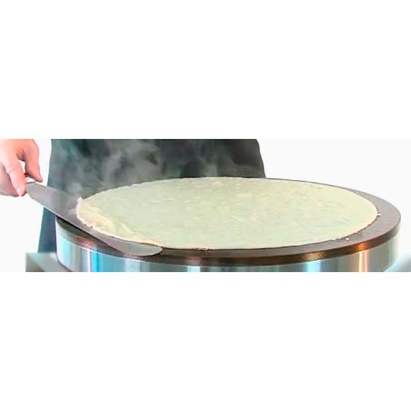 1 stĺpik, nerezové telo, liatinová pracovná plocha s antiadhéznym povlakom, priemer fritovacej plochy - 400 mm, špeciálna stierka na prevracanie palaciniek. Hmotnosť 20 kg.Špecifikácia