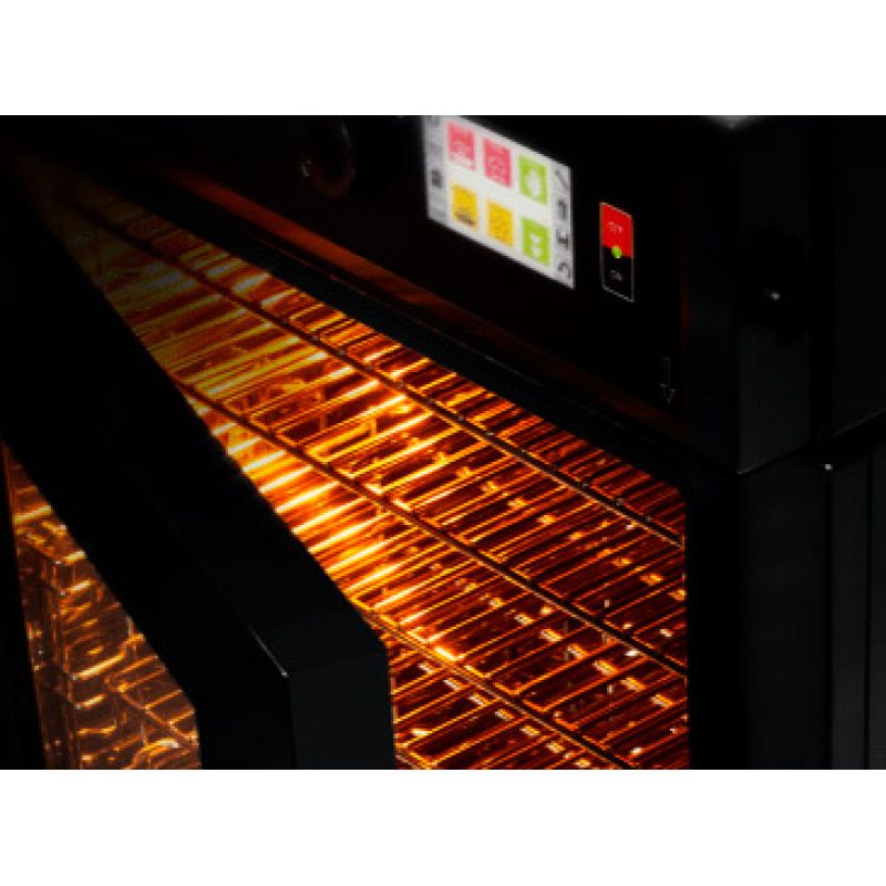 Nízkoteplotná rúra na varenie s možnosťou údenia Moduline FA 082 E. Vybavením je unikátna kombinácia 3 v 1: nízkoteplotná rúra, ohrievacia skriňa a udiareň. Rúra na udiareň má elektronický ovládací panel s veľkou LCD obrazovkou a jednoduchým logickým menu v ruštine, ktoré vám umožňuje jednoducho zvoliť vhodný program a uložiť ľubovoľné recepty (s rôznymi teplotami v pracovnej komore a vo vnútri výrobku, časom varenia atď.).