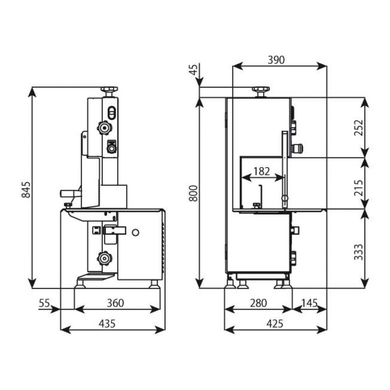 Predstavujeme pásovú pílu na kosti La Minerva A/155 - riešenie pre maloobchody a stravovacie zariadenia. La Minerva A/155 je vyrobená z vysoko kvalitnej nehrdzavejúcej ocele, ktorá zaisťuje maximálnu hygienu a jednoduché čistenie. Jeho hladké povrchy sa ľahko čistia a nezadržiavajú nečistoty, zatiaľ čo odnímateľná škrabka na handričku a vyberateľný odpadkový kôš z nehrdzavejúcej ocele maximálne zjednodušia údržbu. Chápeme dôležitosť bezpečnosti vášho personálu, preto je La Minerva A/155 vybavená bezpečnostným zariadením s vypínačom nulového napätia, elektronicky riadeným brzdovým systémom a bezpečnostným koncovým vypínačom, ktorý poskytuje spoľahlivú ochranu počas prevádzky. S rýchlosťou rezu až 16 m/s, výškou rezu: 21 cm, šírkou rezu: 18 cm zaručuje La Minerva A/155 efektívnu prácu a vysokú produktivitu. S jeho pomocou sa môžete ľahko vyrovnať s úlohami akejkoľvek veľkosti. Korpus, ochranné dvierka a pracovná doska La Minerva A/155 sú tiež vyrobené z nehrdzavejúcej ocele, čo zaisťuje trvanlivosť a odolnosť proti poškodeniu. Jeho robustný a spoľahlivý pracovný stôl ešte viac umocní váš zážitok z používania tohto nástroja. La Minerva A/155 je dokonalá kombinácia výkonu, hygieny a bezpečnosti, vyrobená špeciálne pre vaše podnikanie. Presvedčte sa o jeho prevahe ešte dnes!