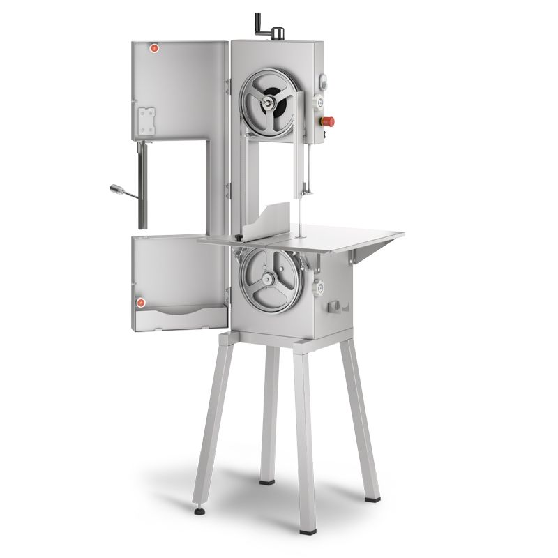 Predstavujeme profesionálnu pásovú pílu na kosti La Minerva C/E 205 pre váš podnik na spracovanie mäsa. Táto výkonná píla na nehrdzavejúcu oceľ ponúka veľkú pracovnú plochu a vysokú presnosť rezu vďaka svojej robustnej konštrukcii a kompaktným rozmerom. Hladké povrchy sa ľahko čistia a nezadržiavajú nečistoty, čo zaisťuje dokonalú hygienu. Odnímateľný odpadkový kôš a ďalšie odnímateľné časti uľahčujú proces údržby. Vysokorýchlostný motor s vlastným vetraním a bezpečnostný systém s nulovým vypínačom zaisťujú spoľahlivú a bezpečnú prevádzku. Táto píla je vybavená napínacím zariadením kotúča s trecou brzdou a má dĺžku pásu 205 cm, výšku rezu 33 cm a šírku rezu 23 cm Verzia CE potvrdzuje súlad s európskymi normami kvality a bezpečnosti.Špecifikácia