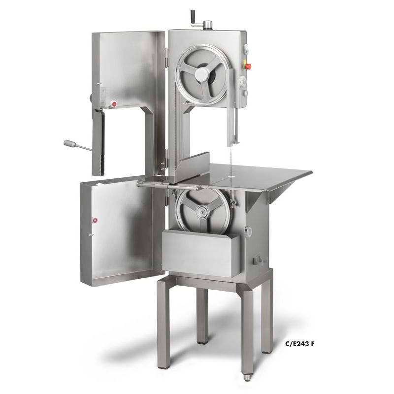 Predstavujeme Vám pásovú pílu La Minerva C/E 243 F - nástroj pre profesionálne použitie v mäsokombinátoch, rybárskom priemysle, supermarketoch a hypermarketoch. Tento model s pevným stolom zaisťuje nepretržitú prevádzku vďaka elektromechanickej motorovej brzde. Stojan na ľavej strane vytvára pohodlné pracovné podmienky a veľká pracovná plocha a široká štrbina zaisťujú efektívne rezanie. Hladké povrchy sa ľahko čistia a odnímateľný odpadkový kôš uľahčuje údržbu. Samonastaviteľný napínač čepele a poistka zaisťujú bezpečnú a presnú prácu. Bezpečnostný koncový spínač na dverách, rýchlosť rezu 15 m/sec. Rám, korpus, ochranné dvierka a doska stola sú vyrobené z nehrdzavejúcej ocele pre odolnosť a jednoduchú údržbu. Zariadenie na napínanie kotúča s trecou brzdou a ďalšie funkcie ako výška rezu 35 cm, šírka rezu 29 cm, verzia CE robia z tejto píly spoľahlivý a efektívny nástroj.Špecifikácia