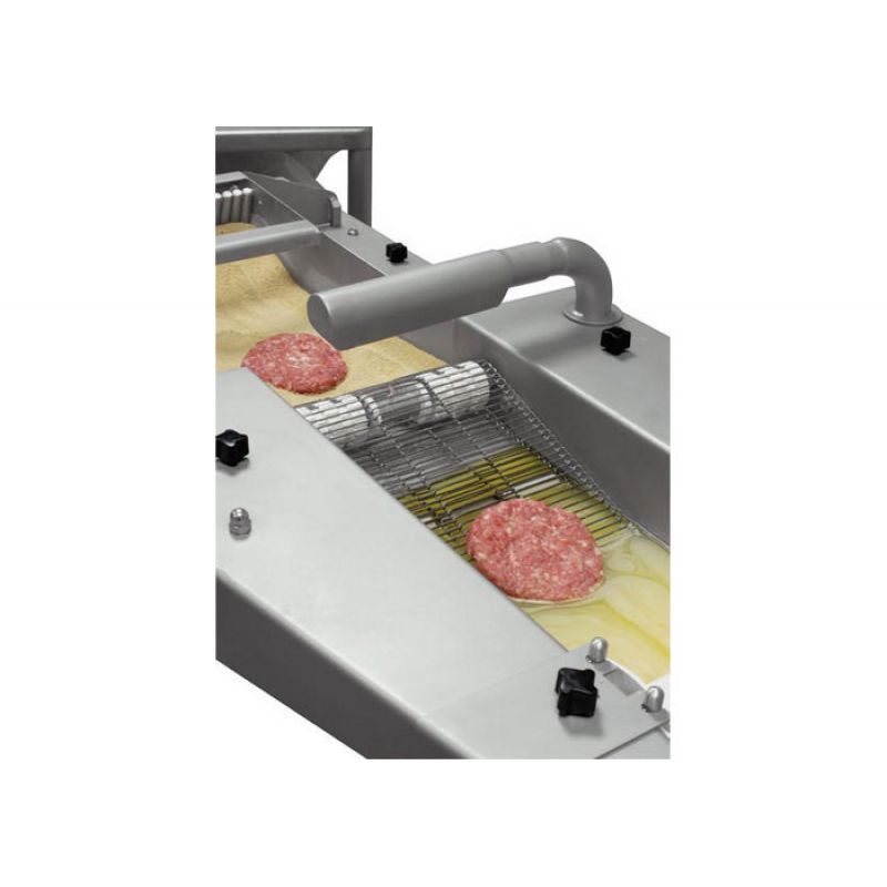 Univerzálny automatický baliaci stroj GASER Mini je spoľahlivým riešením pre výrobu vysoko kvalitných produktov rýchleho občerstvenia. S jeho pomocou ľahko a rýchlo spracujete veľké množstvo produktov v krátkom čase. Stroj poskytuje automatické mokré a suché nakladanie a má tiež sklápač na vykladanie strúhanky. Vyfukovací mechanizmus vám umožňuje odstrániť prebytočné spojenie a špeciálna konštrukcia pásu alebo výstupného dopravníka zaisťuje odstránenie prebytočného náplne. Zariadenie sa ľahko čistí a umýva vďaka jeho kompletnej demontáži a konštrukcii z nerezovej ocele a netoxického plastu vhodného pre mäsový priemysel. Stroj je navyše upevnený na 4 nohách s kolieskami, čo zaisťuje jeho maximálnu stabilitu a výkon. Ekonomická cena robí GASER Mini atraktívnym pre malé a stredné podniky a rozmery stroja v balení (145x70x80 cm) umožňujú jeho jednoduchú prepravu a inštaláciu na požadované miesto. S GASER Mini môžete výrazne zvýšiť efektivitu svojej výroby a poskytnúť svojim zákazníkom vysokokvalitné produkty rýchleho občerstvenia. Spoľahlivosť, jednoduchosť a hospodárnosť sú tri hlavné výhody tohto zariadenia.Špecifikácia