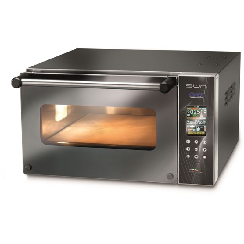 Ponorte sa do umenia talianskej pizze s našou pecou na pizzu Gam SUN E. Pec na pizzu SUN E je vybavená inteligentným elektronickým ovládaním, umožňuje optimalizovať spotrebu energie a zaisťuje maximálnu efektivitu. Táto rúra sa dokáže zohriať až na 500 °C vďaka silnej izolácii a funkcii Booster, ktorá zaisťuje okamžité dosiahnutie požadovanej teploty. Neuveriteľne kompaktné rozmery vám umožňujú vytvoriť vyhradený priestor na prípravu pizze aj v tých najstiesnenejších priestoroch. Vynikajúca kvalita materiálov - komora z pohliníkovaného plechu a vonkajšia konštrukcia z prelakovaného plechu - zaručuje odolnosť a spoľahlivú prevádzku. Sklenené dvierka a vnútorné osvetlenie umožňujú pozorovať proces varenia a vytvárajú jedinečnú atmosféru. To však nie je všetko: vďaka elektronickému ovládaniu s farebným displejom, aktualizáciám softvéru cez Wi-Fi a možnosti ukladania programov pečenia máte nad procesom úplnú kontrolu a maximálne jednoduché používanie. Ponorte sa do sveta talianskej kuchyne s pecou na pizzu Gam SUN E a prineste do svojej reštaurácie alebo domova jedinečnú chuť talianskej tradície.Špecifikácia