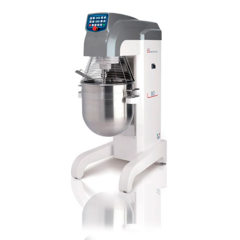 Moderný planétový mixér Mecnosud MX80T sa vyznačuje rovnomerným pohybom hnetacieho prvku, čo má vynikajúci vplyv na konzistenciu výsledného produktu. Dokonale si poradí s miešaním, šľahaním, miesením akéhokoľvek druhu cesta a vytváraním cukrárskych hmôt. Nechýba prepínač otáčok (spolu 3 rýchlosti), ochranná mriežka a elektromechanický ovládací panel. Typ zdvíhania misy je ručný. Telo je vyrobené z lakovanej ocele, pracovné časti a misa sú vyrobené z prvotriednej potravinárskej nehrdzavejúcej ocele.