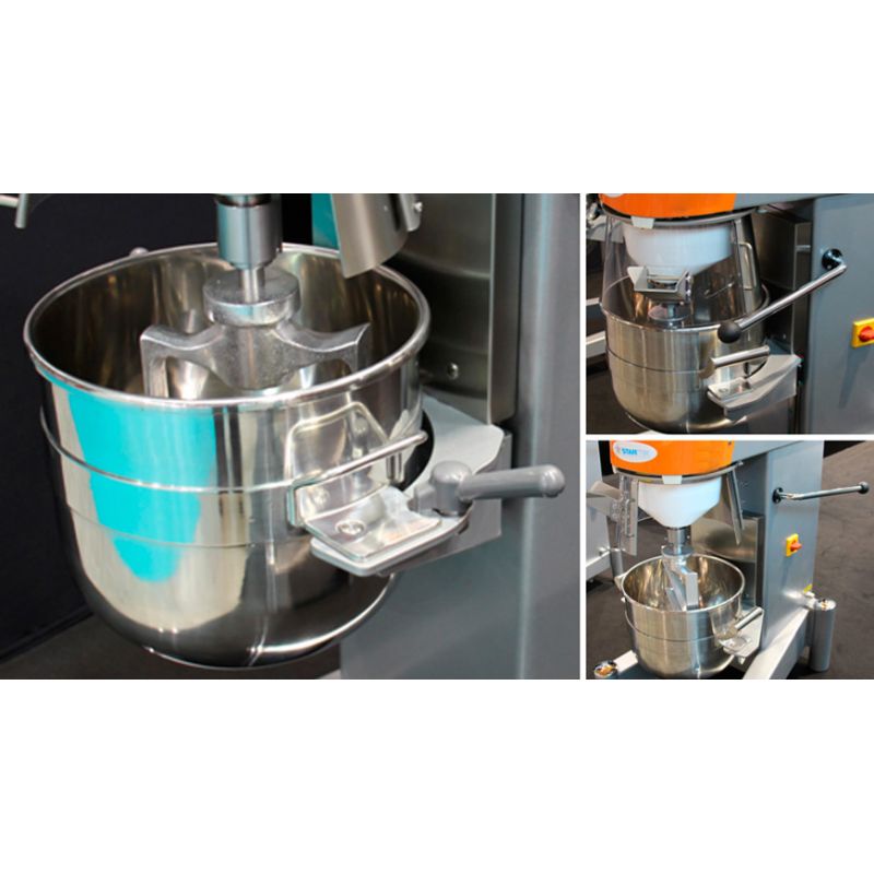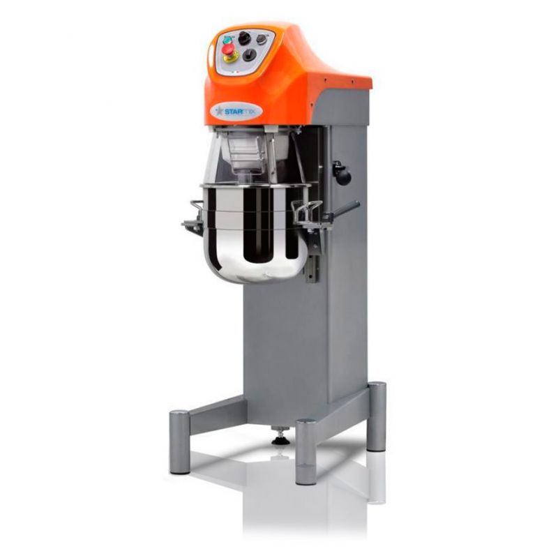 Planetárny mixér PL20BN2F od Starmix Je určený na vykonávanie rôznych kulinárskych úloh a používa sa v stravovacích zariadeniach a profesionálnych kuchyniach. Zariadenie je vybavené pohodlným plastovým vekom so zámkom, má 20-litrovú misku a štandardnú sadu hliníkových nástavcov. Súprava obsahuje 3 mm metličku (v prípade záujmu si môžete objednať 6 mm), špachtľu a háčik. Ovládanie sa vykonáva pomocou elektromechanického panelu. Počet rýchlostí – 2 (155 a 311 ot./min.). Mechanizmus spúšťania misy je ručný. Celkové rozmery: 564x728x918 mm.